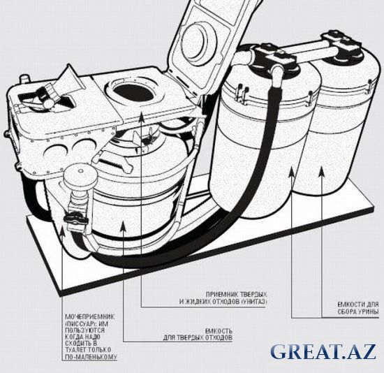 На Международной космической станции общий принцип работы системы тот же. В унитаз вмонтированы мощные воздушные насосы. Все отходы сортируются и какое-то время хранятся на борту. Моча всасывается и собирается в 20-литровые контейнеры. Эти контейнеры затем перегружаются на грузовые космические корабли “Прогресс”, которые сгорают при входе в верхние слои атмосферы.